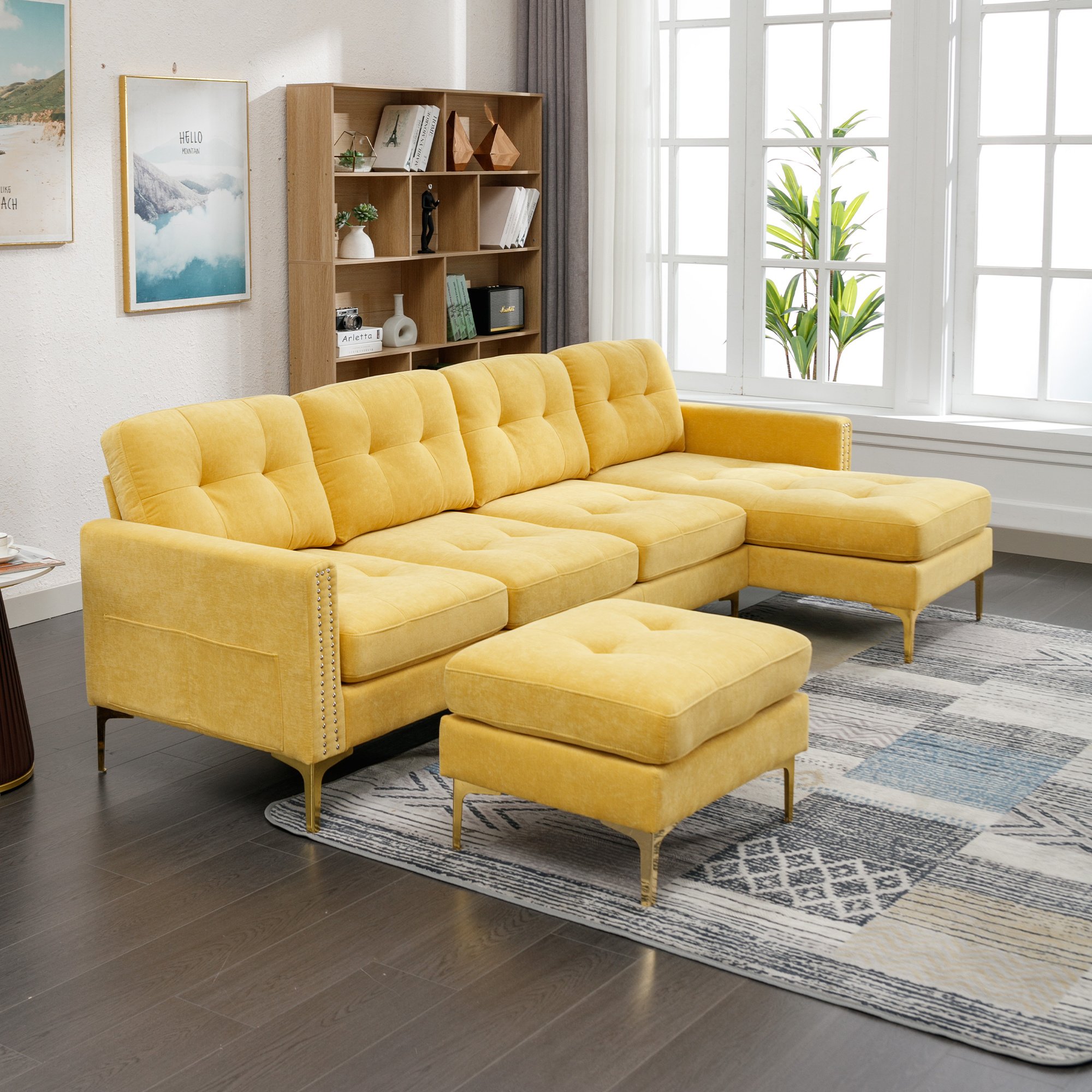 110" L-Shape Convertible Sectional Sofa Couch with Movable Ottoman for Living Room, Apartment, Office, Yellow
