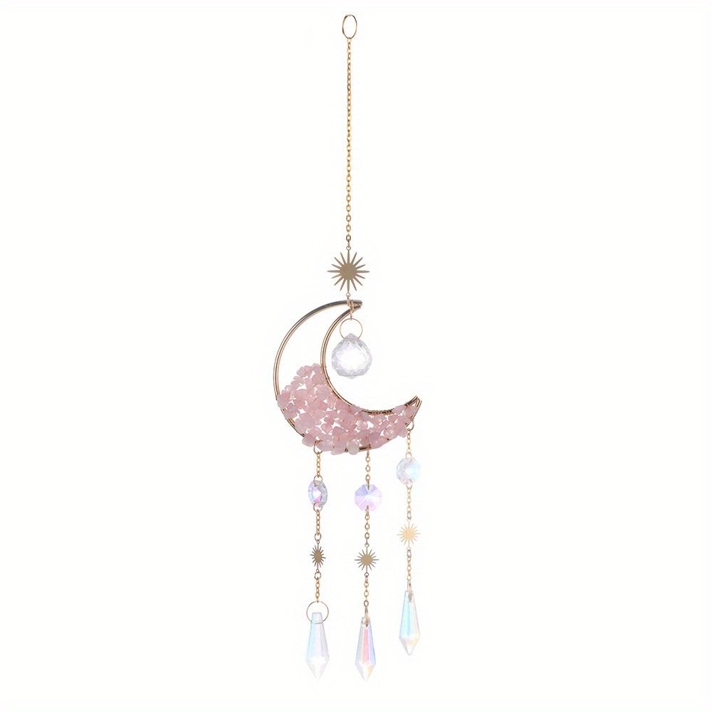 1pc Rainbow Maker Sun Catcher - Indoor/Outdoor Window Prism Moon Mini Dream Catcher with Crystals and Healing Stones - Garden Tree Decorations