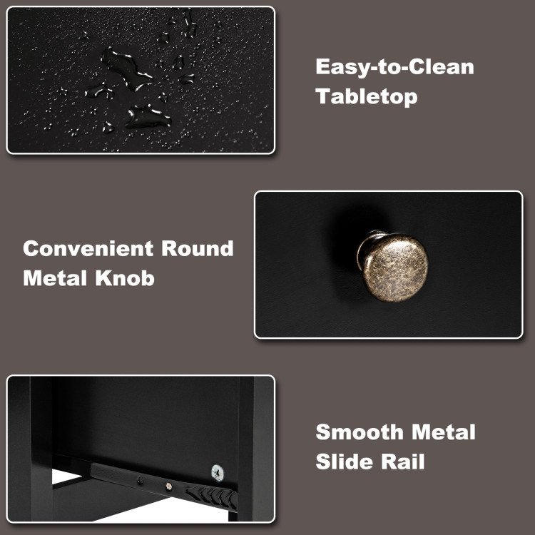 1.Easily Accessible Side Drawers: Featuring 3 drawers on the side, this computer desk offers ample space for placing multiple kinds of stuff. Sufficient storage space allows your daily essentials at hand. Besides, each drawer is equipped with a round knob and smooth metal slide so that you can pull it inside or outside easily.