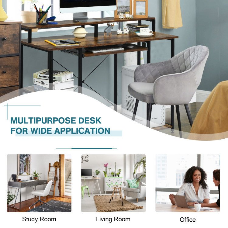 47 Inches Computer Desk Writing Study Table with Keyboard Tray and Monitor Stand