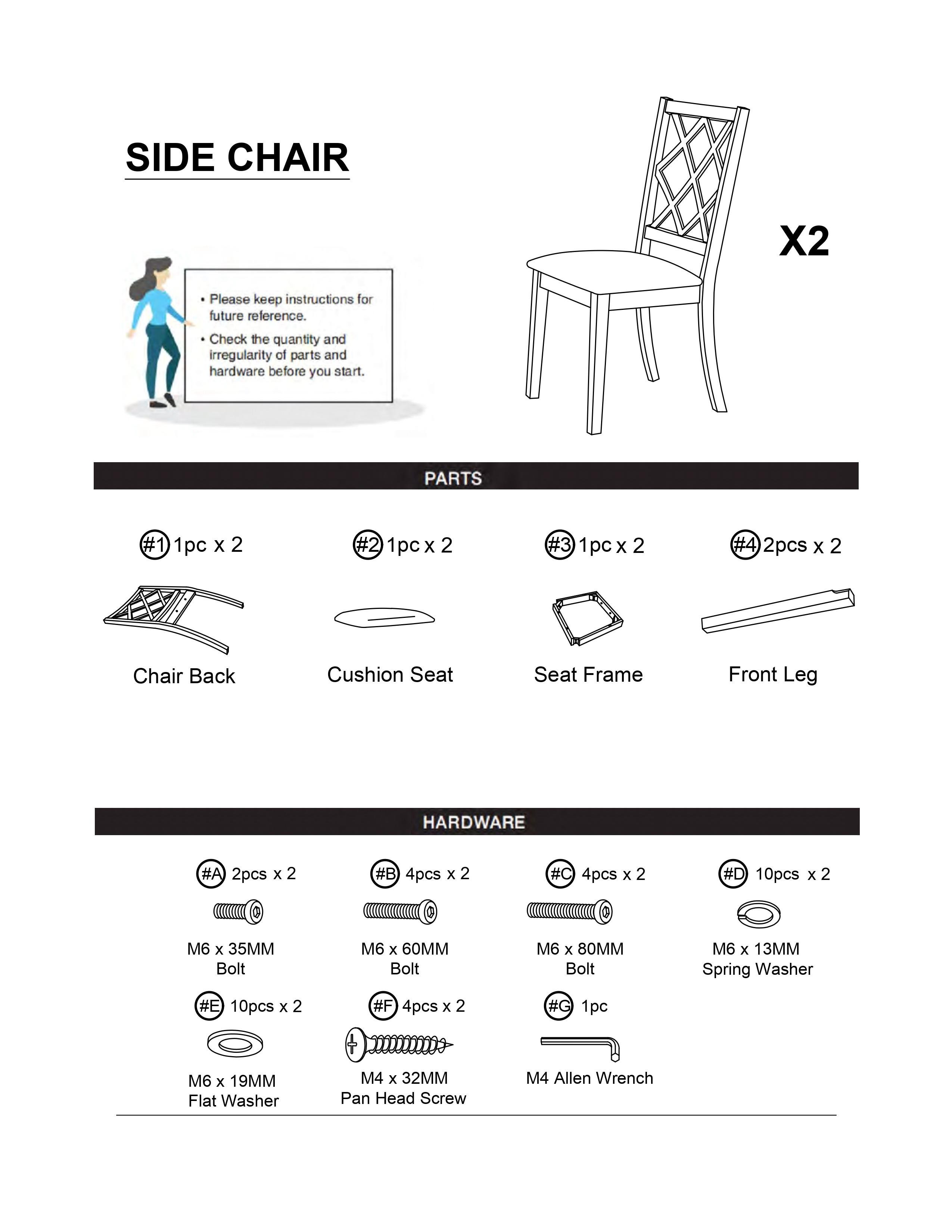 2x Side Chair: 18 1/8"W X 22 1/4"D X 38 3/4"H (SEAT HT: 19 1/4", SEAT DP: 16 1/2")