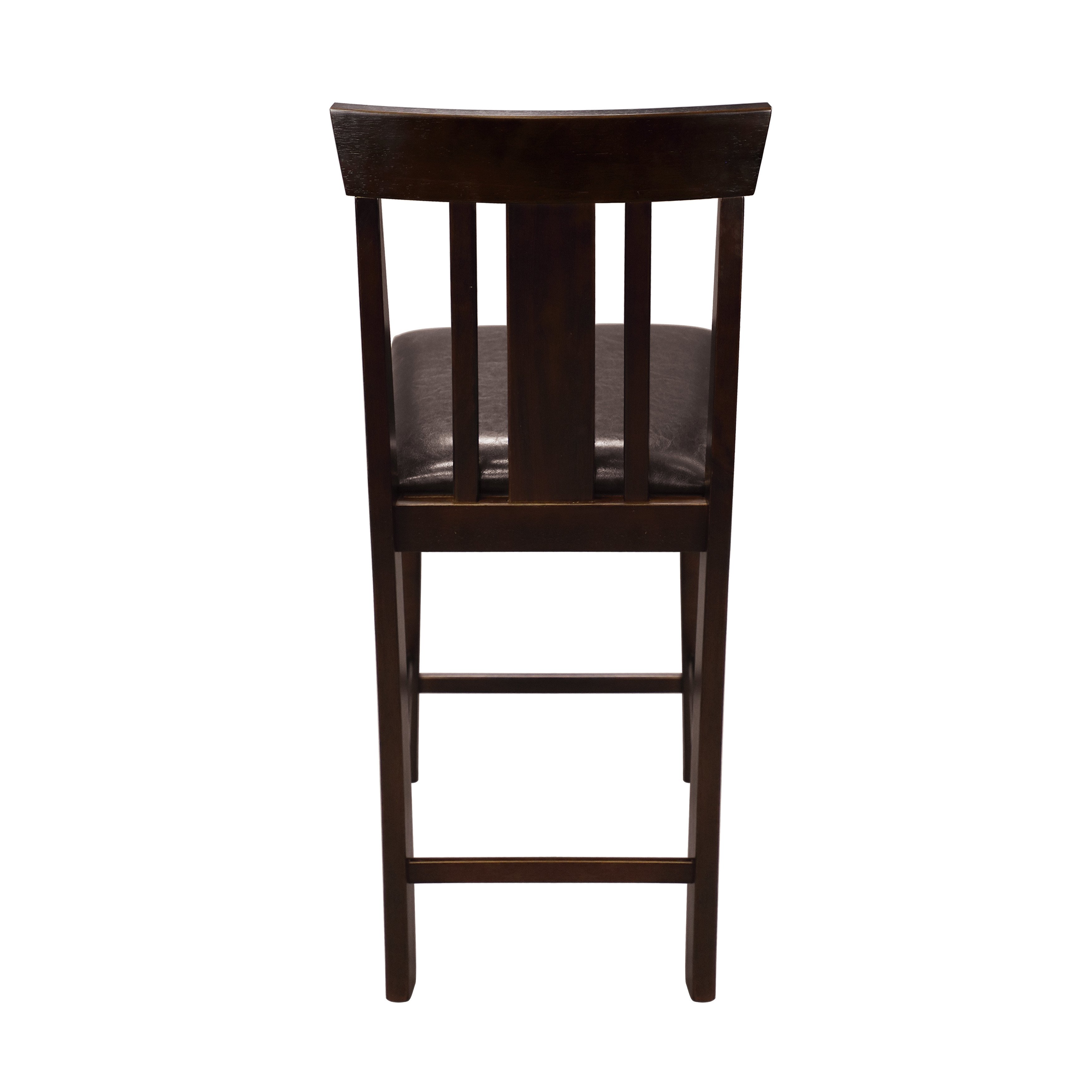 Description & DimensionsAt home in your casual dining space or perhaps in your recreation room, the Diego Collection serves as a casual accent to your home. The birch veneer of the wood-framed chair features a versatile espresso finish, vertical slat backs and padded seats with black faux leather covering.PRODUCT DIMENSIONS: Overall Dimension: 17.25" x 19.25" x 38.75"HSeat Width: 17"Seat Depth: 15.5"Seat Height: 24.75"Listing Includes: Set of 2 Counter Height Chairs Only.Table: Not included.Simple Assembly Require.