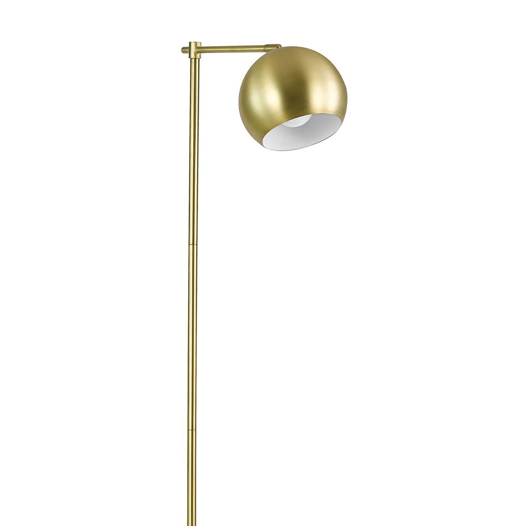 Romance CopyEmbrace an elevated, inviting aesthetic with this modern brass finish metal floor lamp. A globe shade lends a hint of vintage glamour to a clean, minimalist silhouette that beautifully accentuates a wide range of decor motifsProduct DetailsSet includesOne (1) floor lampDimensions60 inches high x 21.5 inches wide x 10.25 inches deepFinish ColorBrassMaterialsMetalSwitch typeSwitch on offSocketA19Bulb type60W