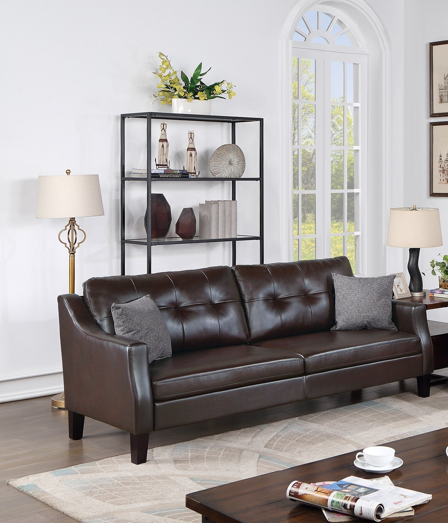 Contemporary Living Room Furniture 2-Pcs Sofa Set Dark Brown Gel Leatherette Couch Sofa And Loveseat Plush Cushion Tufted Plush Sofa Pillows