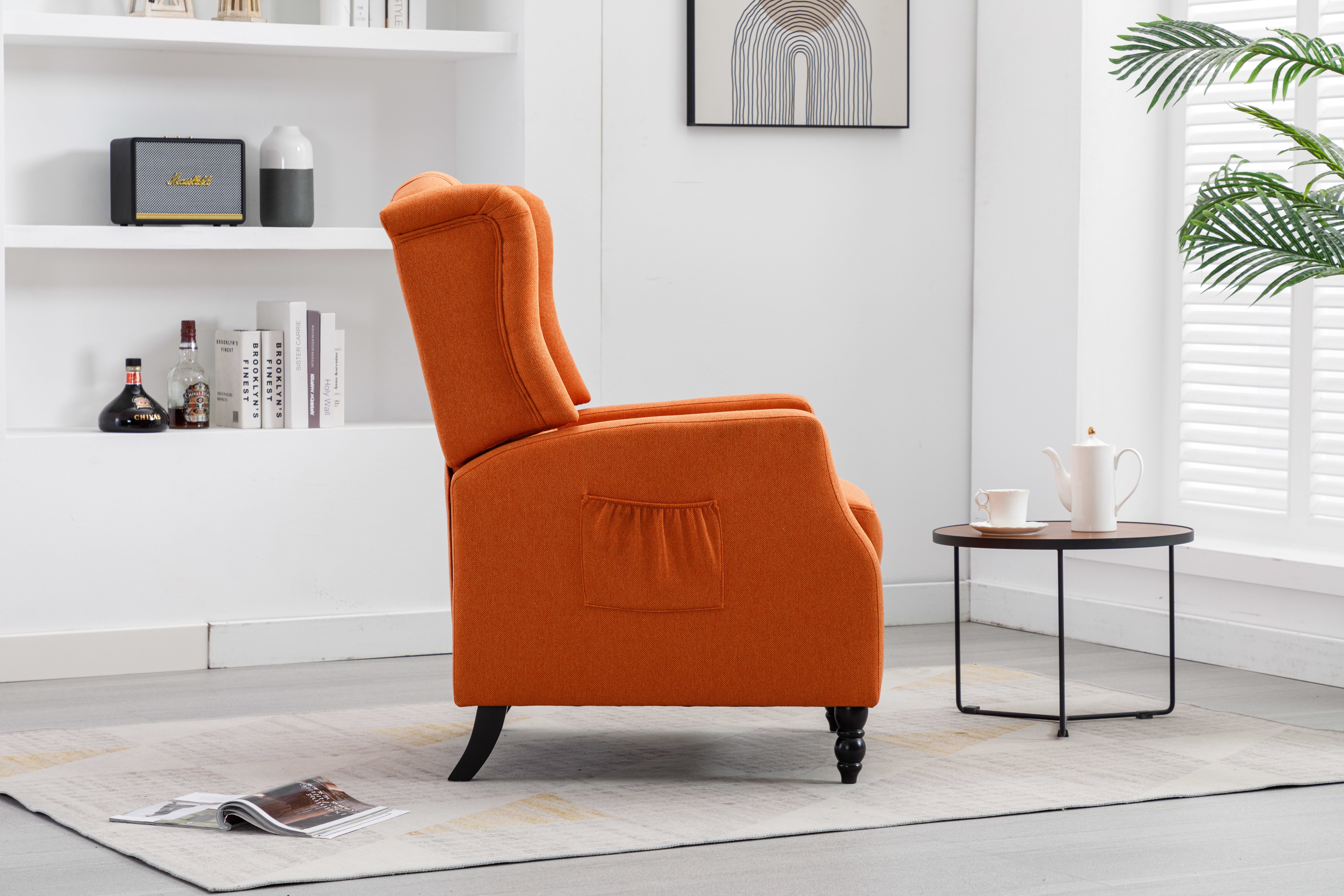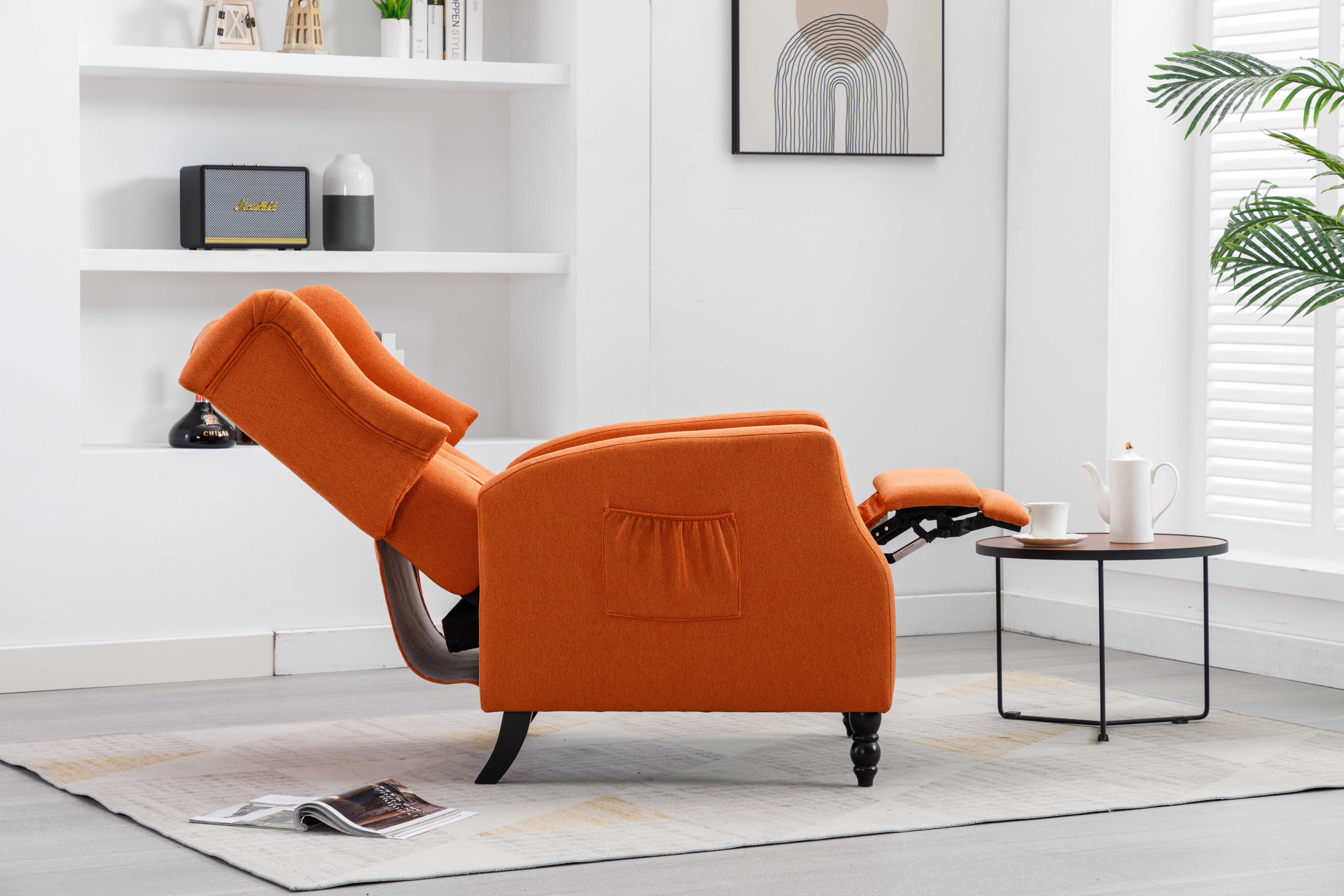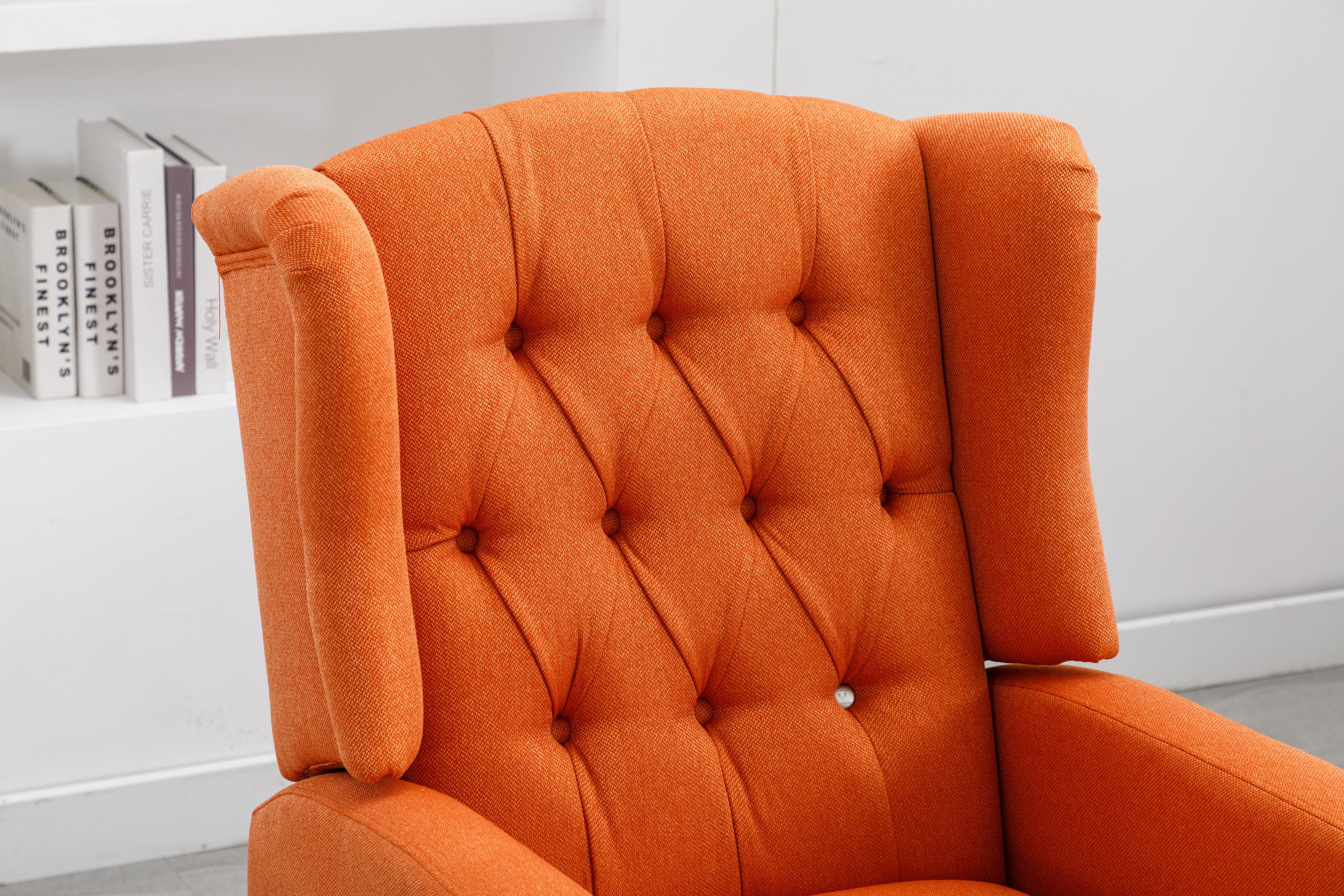 Chair designThe Accent chair is designed to lean back with your arms on the armrest to support your legs stably and can be lowered when not in use. You can enjoy a relaxing time in this single chair, which is a great addition to your evening reading, games and movies.The design of the cushionClassic mid-century modern chair with armrests, extra couch and plush foam padding for more comfort; Solid wood frame and wooden legs increase stability and durability.
