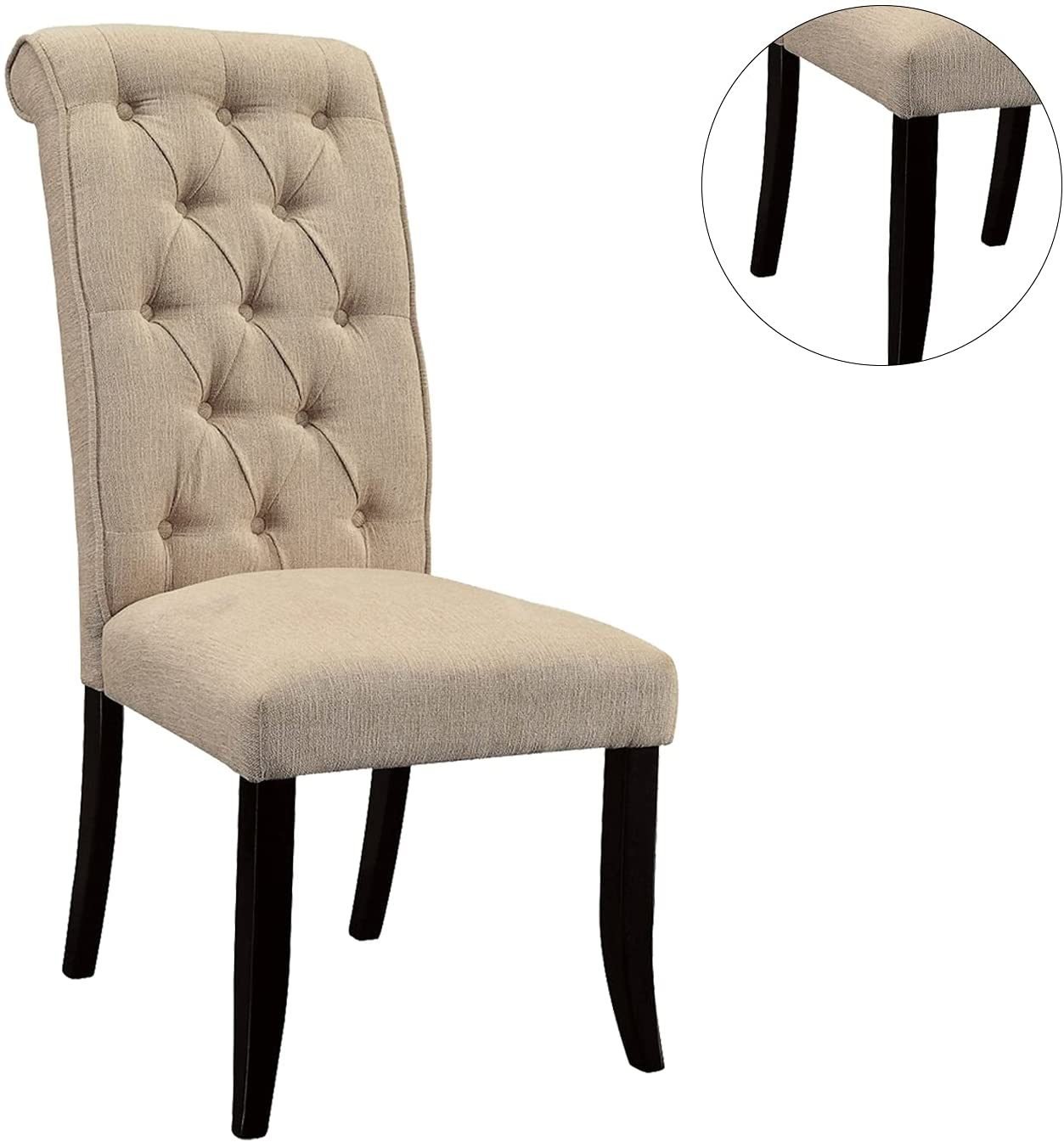 Dining Room Furniture Contemporary Rustic Style Beige Fabric Upholstered Tufted Set of 2 Chairs Kitchen Breakfast