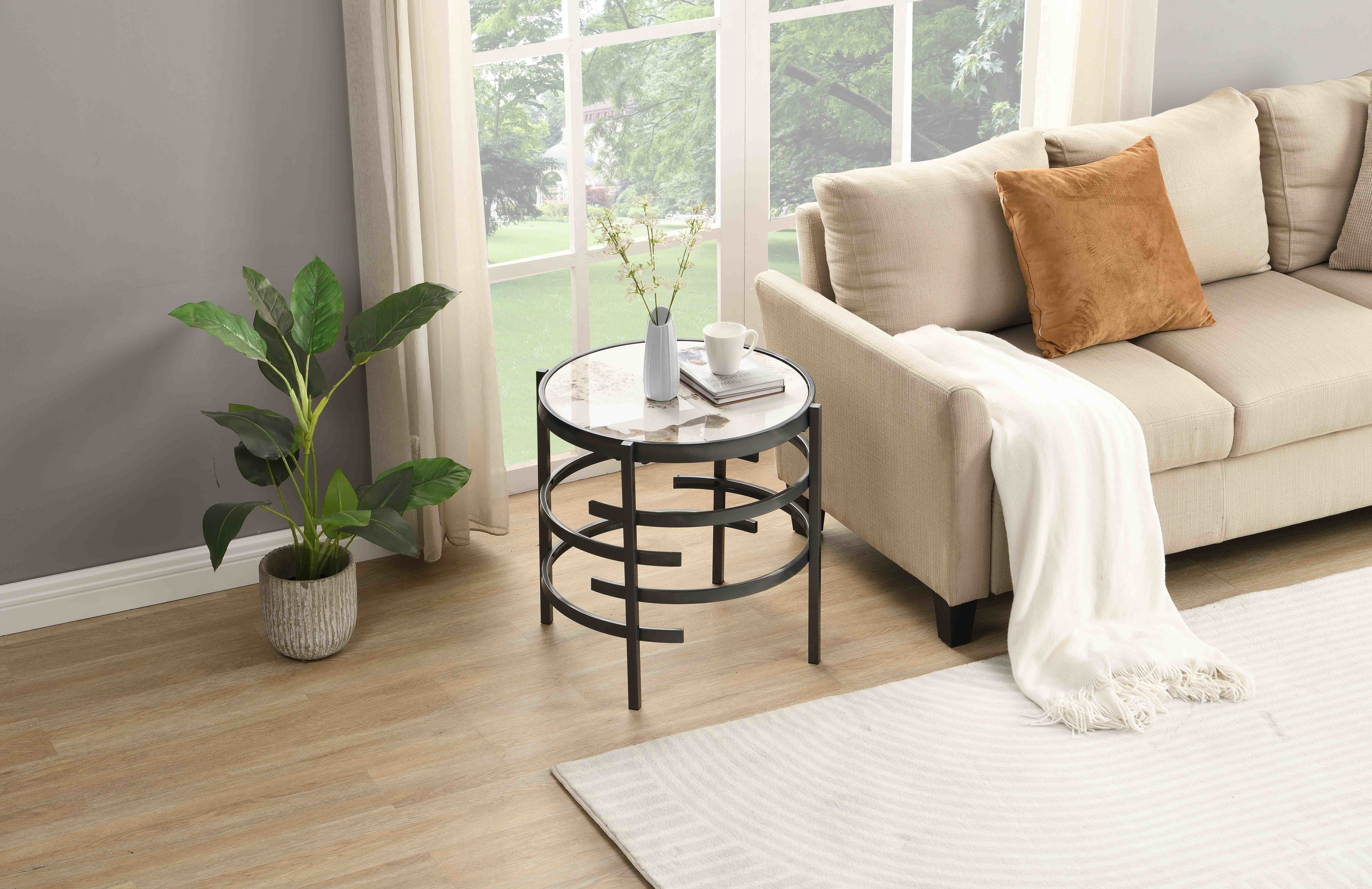 Elegant Pandora Sintered Stone End Table, Darker Gray Small Coffee Table for Living Room 20.67''W x 20.67''D x 21.65''H