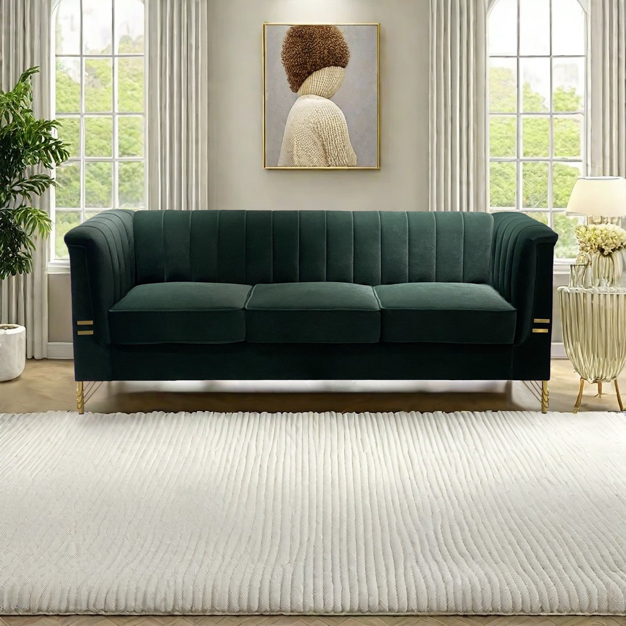 FX-P82-GR(sofa)-82.67'' W Velvet Sofa, Mid-Century Sofa Furniture Chesterfield Couch for Living Room (Sofa, Green)