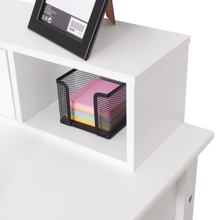 1.4 Storage Drawers for Classification: There are 2 big drawers and a hutch with 2 cute removable drawers and 3 storage rooms which provide you with plenty of added room to well classify accessories and organize your writing desk into a neat one. Table top is wide enough for you to study or work on it.