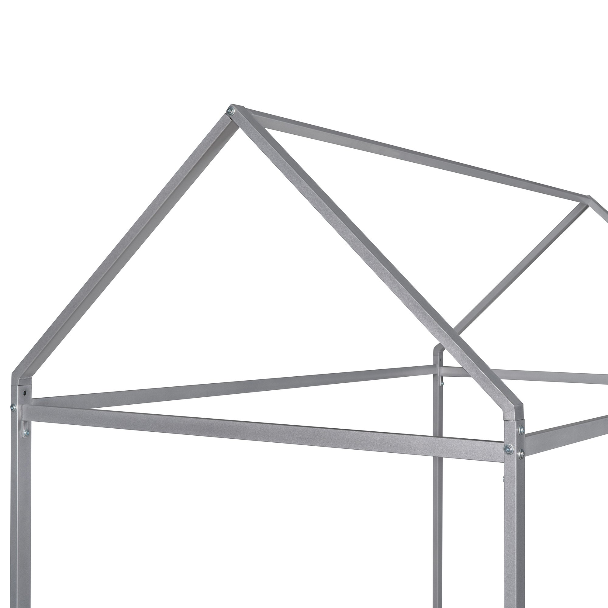 This super cool house bed is ideal for your family. You can create a cool bedroom hideaway and allow your child's imagination to take flight. You can decorate it according to your child's personality due to its versatile and simple framework like drape fabric; wind fairy lights; or attach toys. This Kids metal house bed is also perfect as a reading nook or a playhouse . This bed frame is made of Metal; making it exceedingly sturdy and durable. with stable slat let the bed frame Weight capacity reach 350LBS;