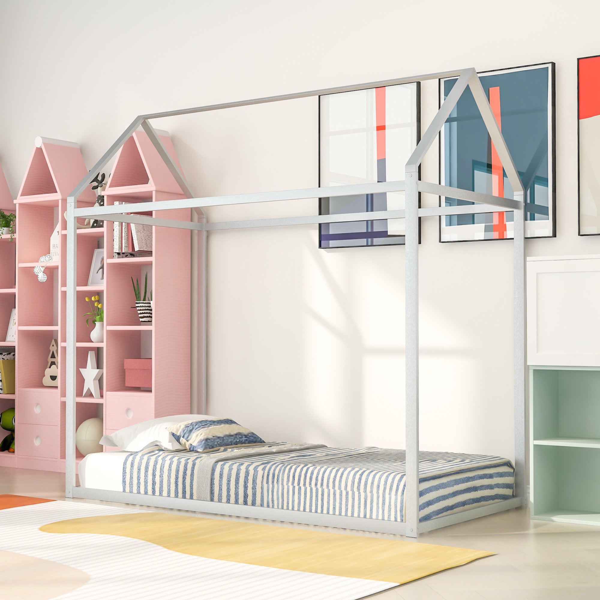 Home > House Bed Frame Twin Size ; Kids Bed Frame Metal Platform Bed Floor Bed for Kids Boys Girls No Box Spring Needed