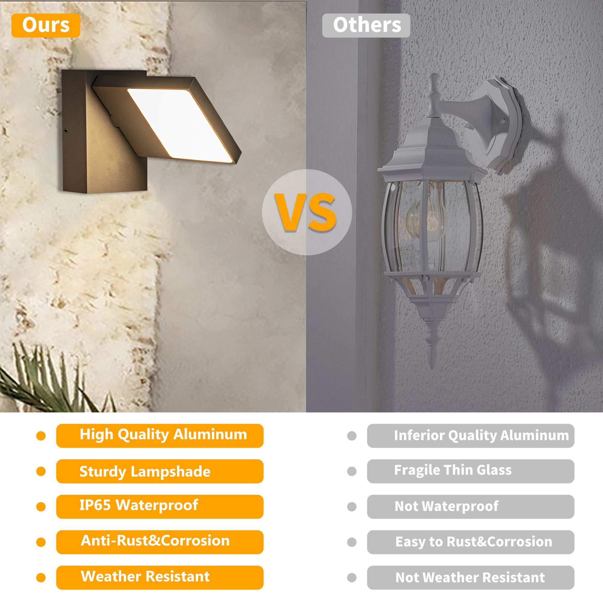 4.IP54 waterproof: all-weather resistant, wall sconces made of high quality aluminum, so anti-rust & corrosion. Never worry about rain, storm, sleet, snow, ultra high or low temperatures, this light fixture will still perfect after years of using.