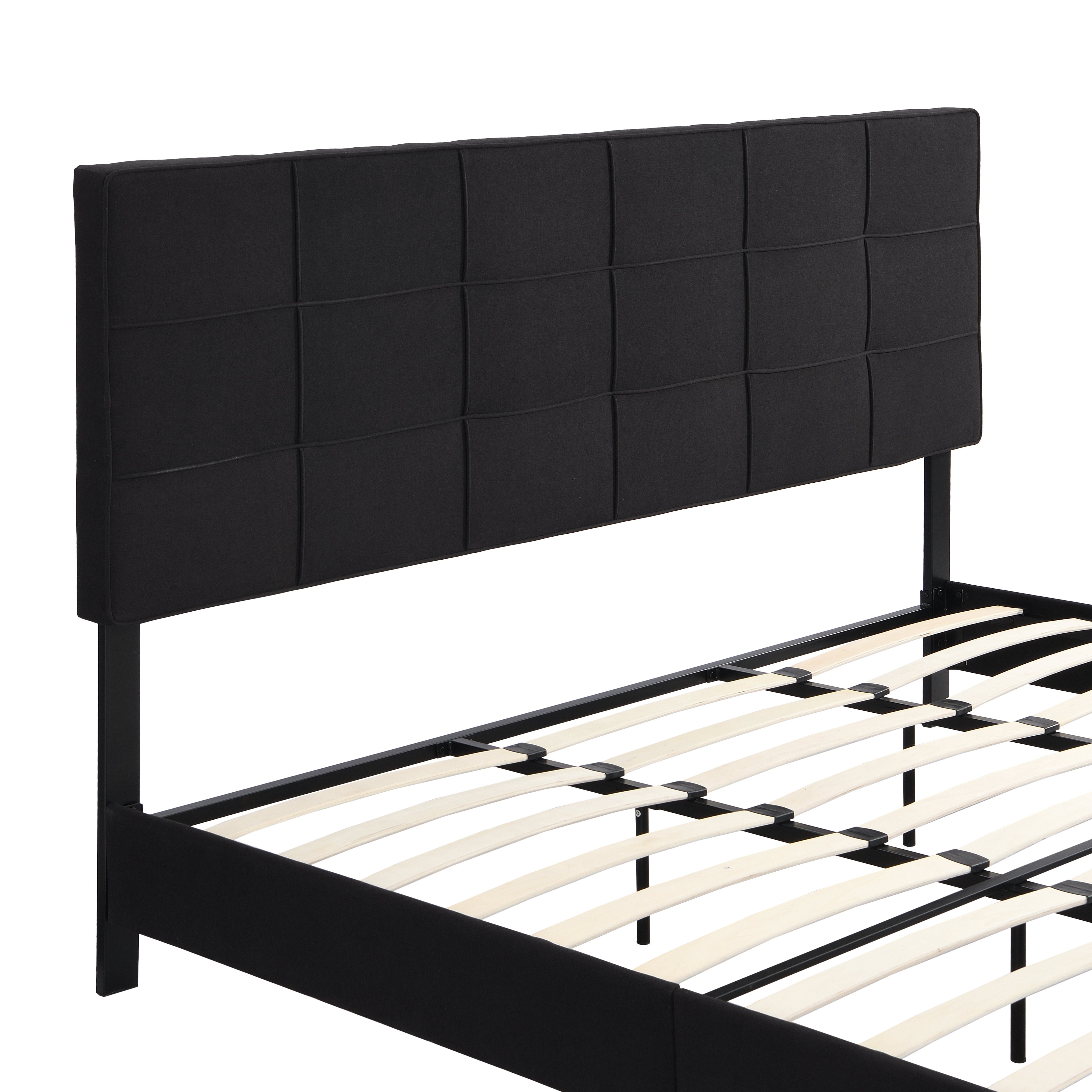 King Size Upholstered Platform Bed Frame with Linen Fabric Headboard, No Box Spring Needed, Wood Slat Support, Easy Assembly, BLACK