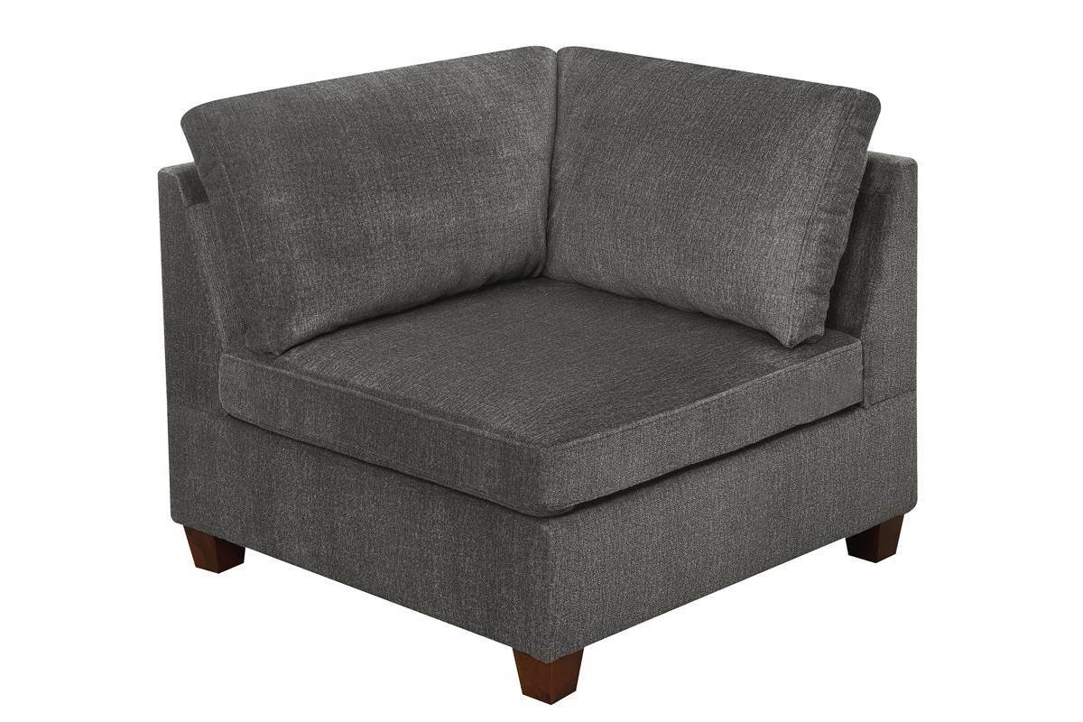 Home > Living Room Furniture Gray Chenille Modular Sectional 7pc Set Modular Sofa Set Couch 3x Corner Wedge 3x Armless Chairs and 1x Ottoman Plywood