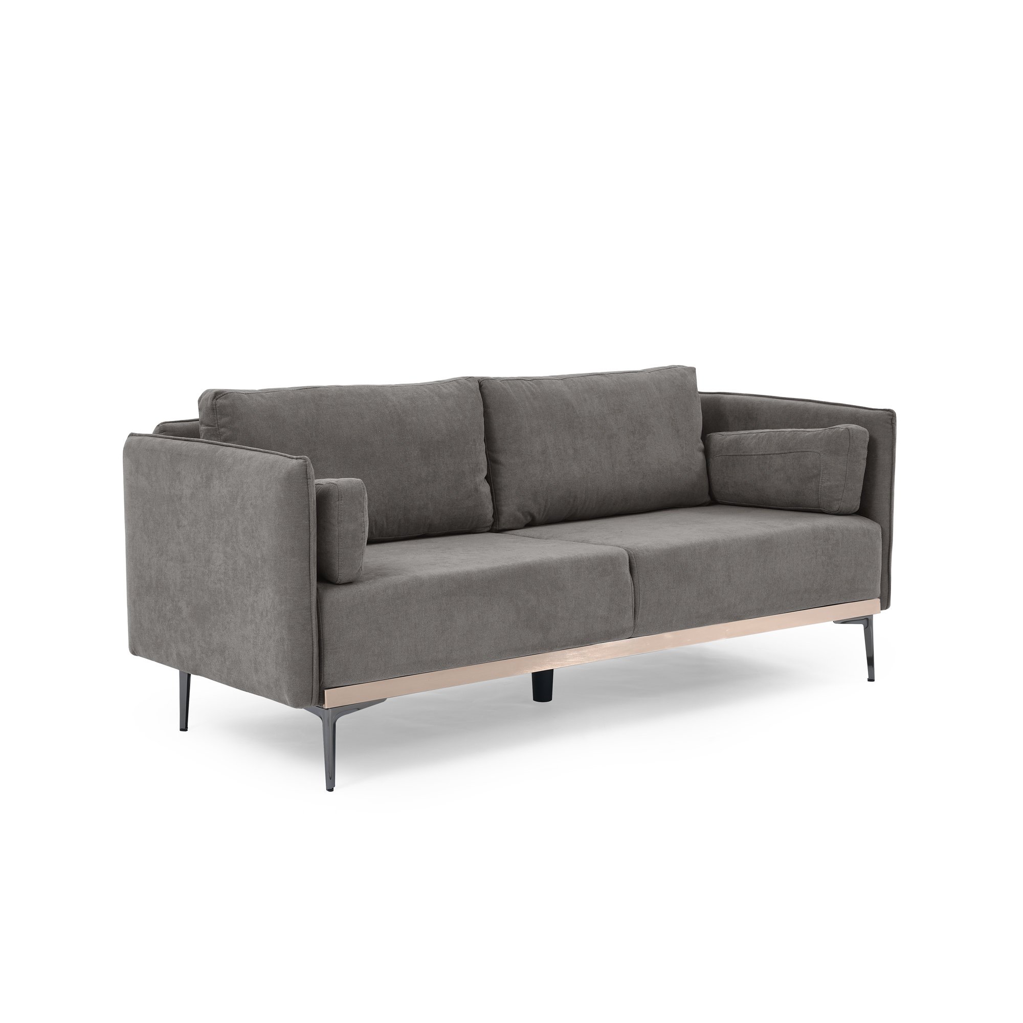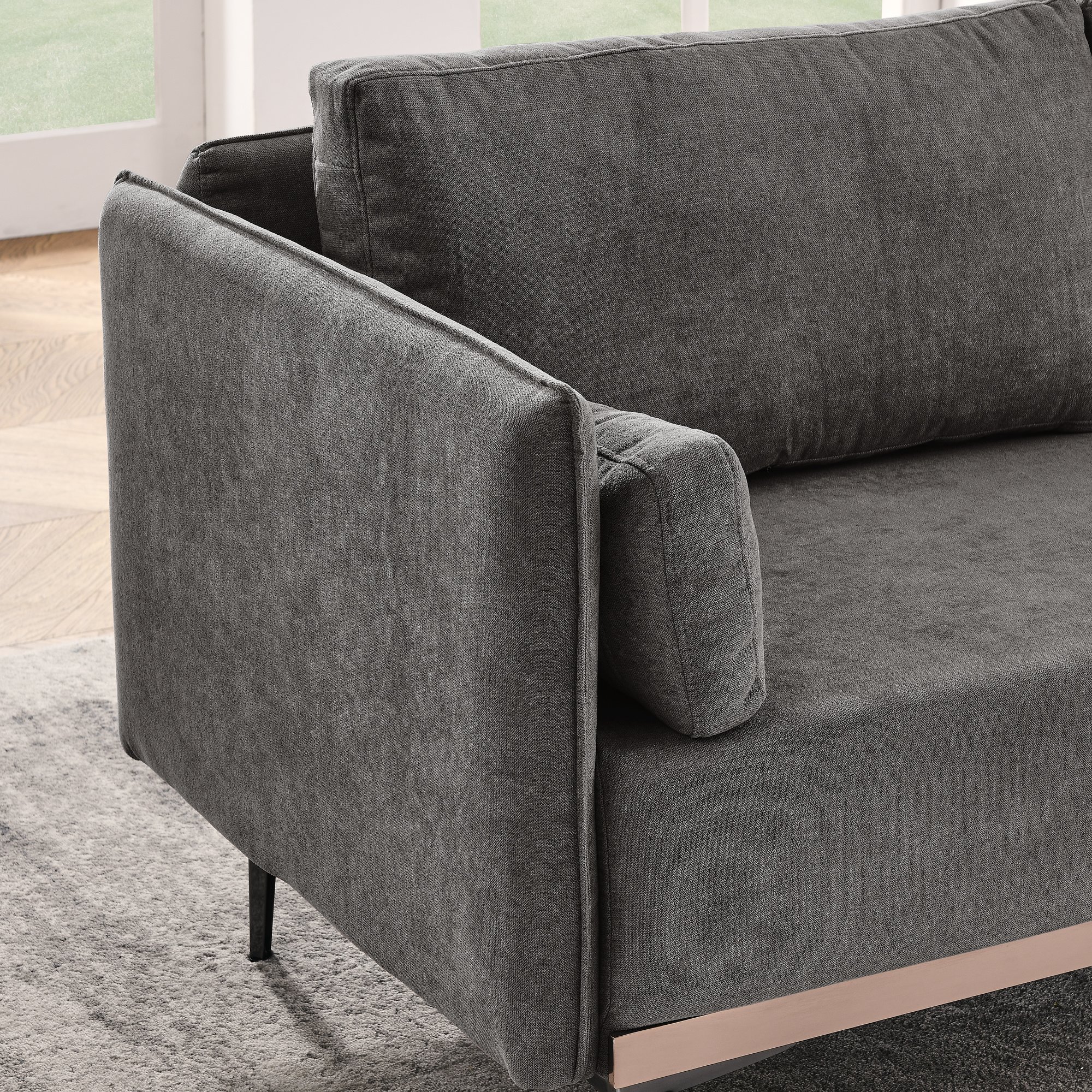 Modern Sofa 3-Seat Couch with Stainless Steel Trim and Metal Legs for Living Room, Grey