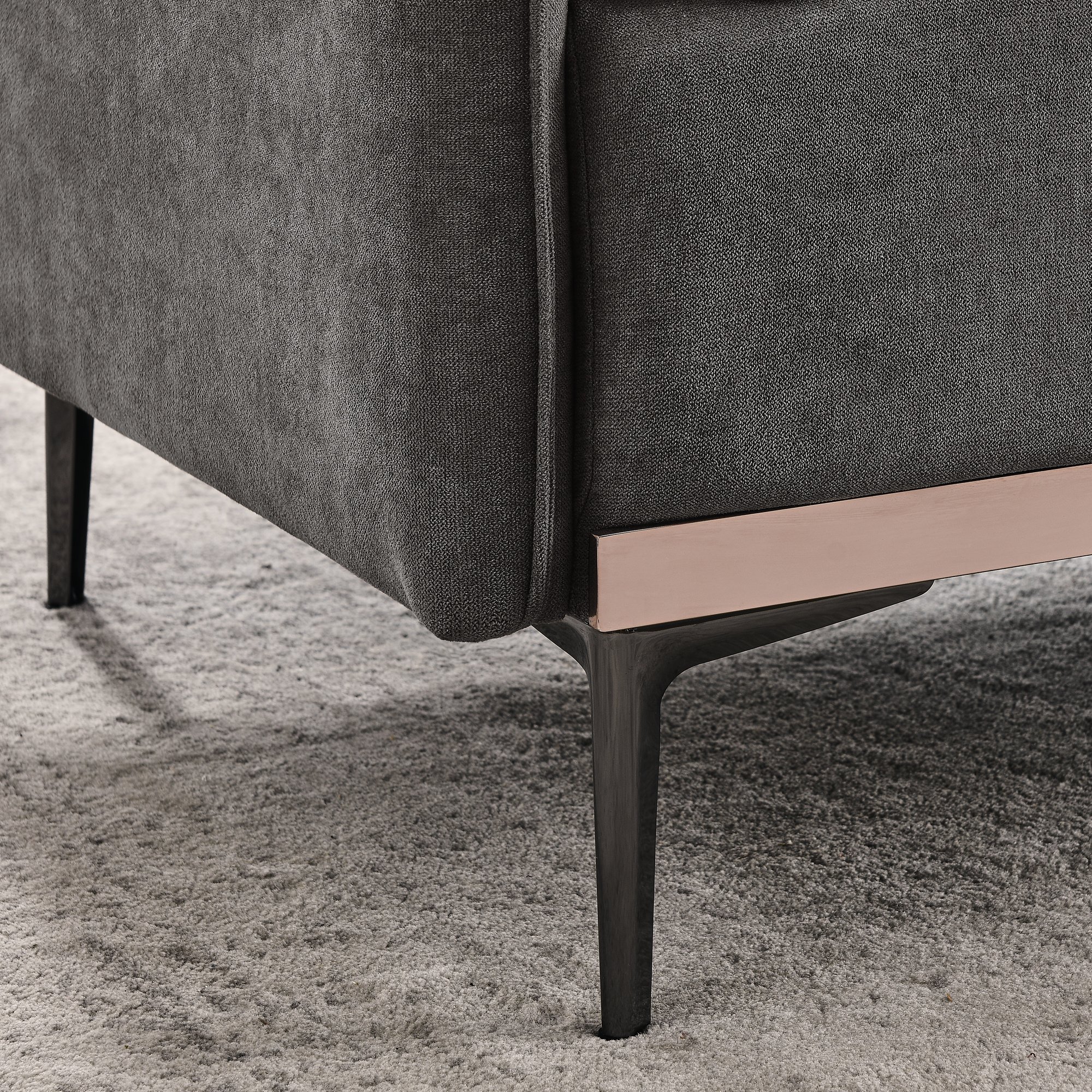 [Modern Minimalist Couch]Straight clean edges and sleek track arms are hallmarks of modern style. Linear and minimalistic, the seat cushions are designed to fits with the armrests, lefting a simple look. The metal trim on the front provides a more artistic touch.
