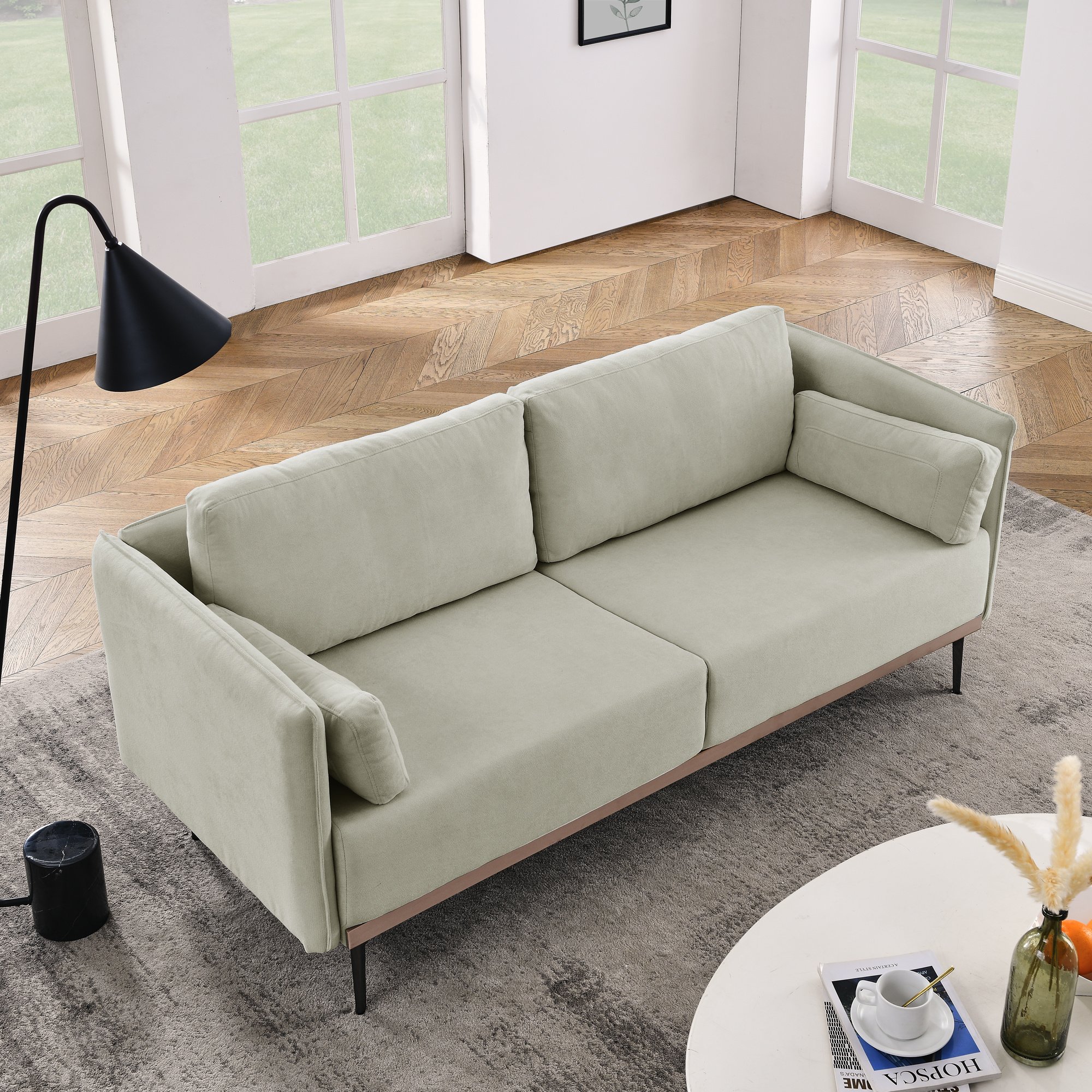 [Modern Minimalist Couch]Straight clean edges and sleek track arms are hallmarks of modern style. Linear and minimalistic, the seat cushions are designed to fits with the armrests, lefting a simple look. The metal trim on the front provides a more artistic touch.