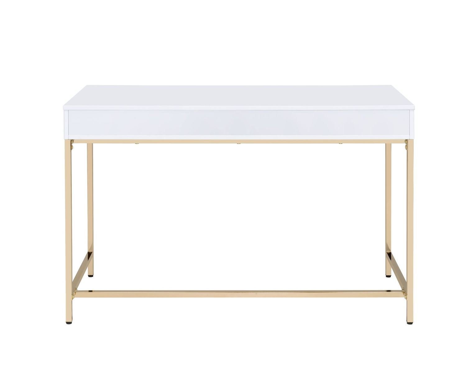 Romance : Motivation starts with a great office or study space. Enjoy the contemporary design of this Ottey office desk while getting all of your work done in style. Featuring white high gloss finish with a gold metal base; this practical yet fashionable desk offers ample surface room and 2 storage drawers for your office supplies or other accessories. Perfect for any office space in your home; this piece will offer you an excellent space to organize all of your work and study needs.