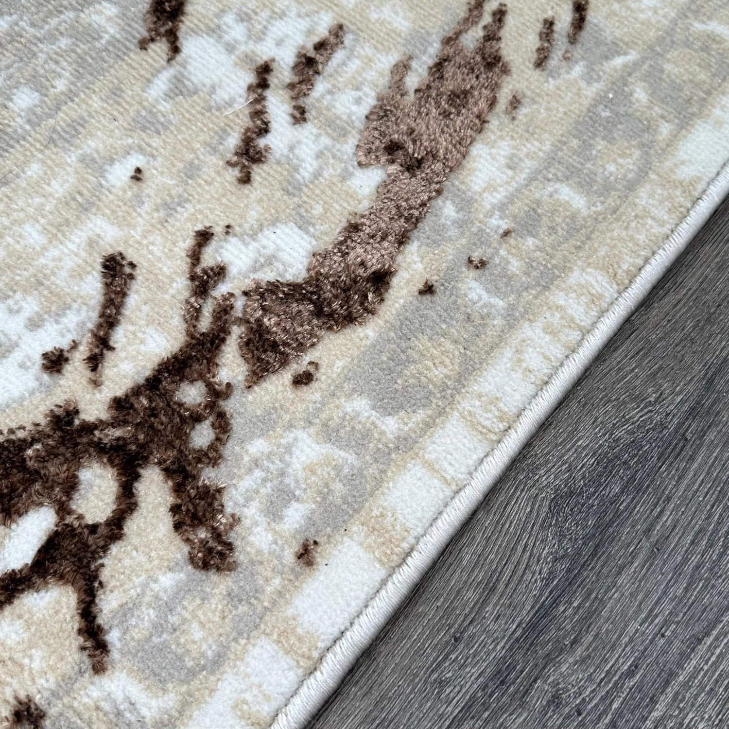 Penina Luxury Area Rug in Beige and Gray with Bronze Circles Abstract Design