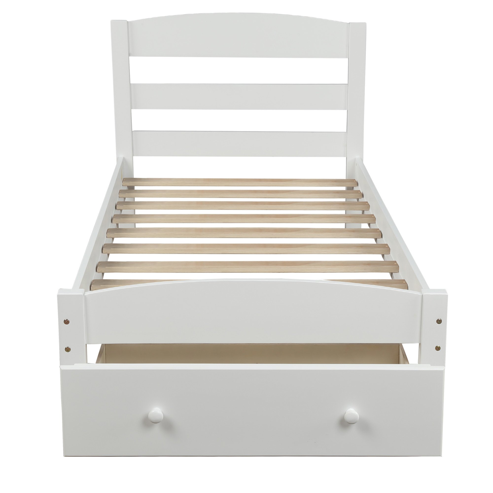 Home > Platform Twin Bed Frame with Storage Drawer and Wood Slat Support No Box Spring Needed, White