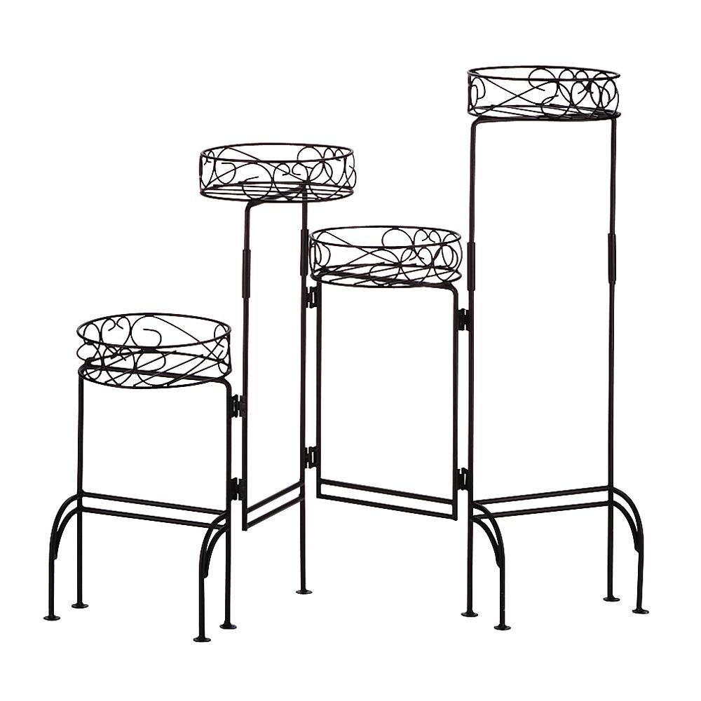 • Form meets function in this versatile design! This unique screen has four graduated-height panels, each topped with a secure plant shelf; foldable to fit any area. Maximum weight: 80 lbs, 20 lbs per basket.