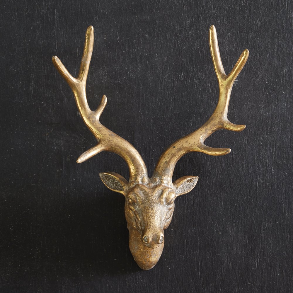 Classic taxidermy takes a twist. This unique deer head gives a luxurious quality to a room with its golden colors. Item is made of resin. To hang, use its keyhole hanger.