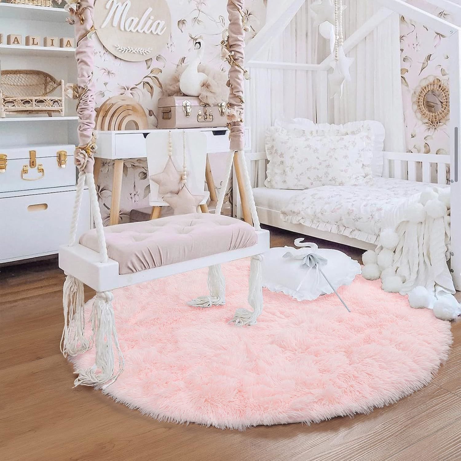 Round Rug for Bedroom, Fluffy Round Circle Rug for Kids Room