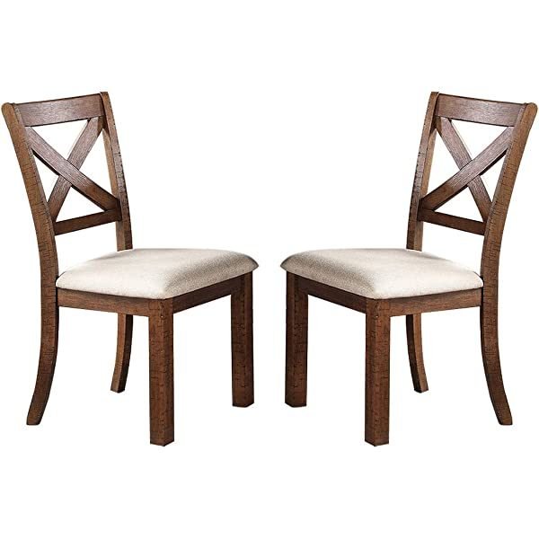 Home > Set of 2 Side Chairs Natural Brown Finish Solid wood Contemporary Style Kitchen Dining Room Furniture Unique X- Design Chairs