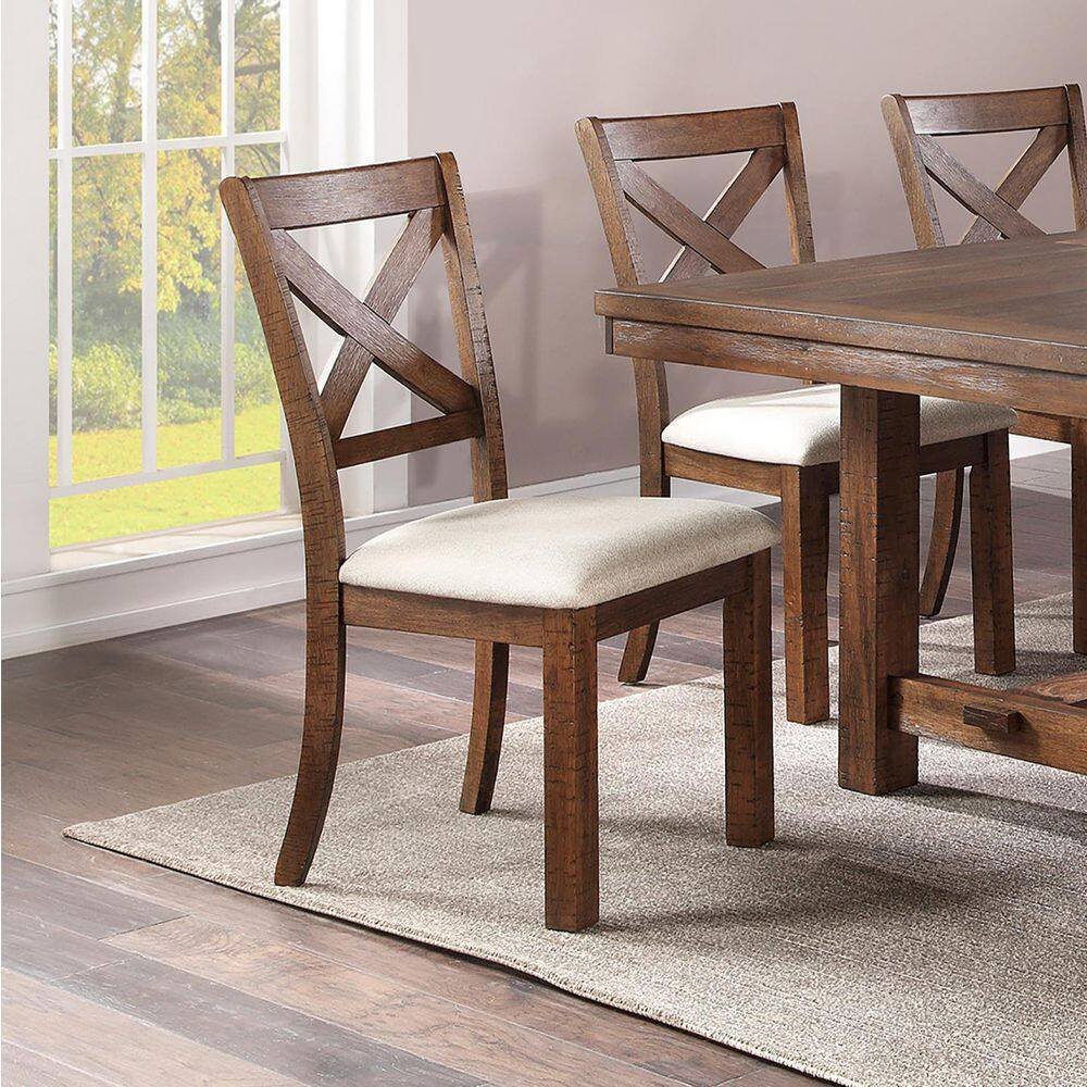 Set of 2 Side Chairs Natural Brown Finish Solid wood Contemporary Style Kitchen Dining Room Furniture Unique X- Design Chairs