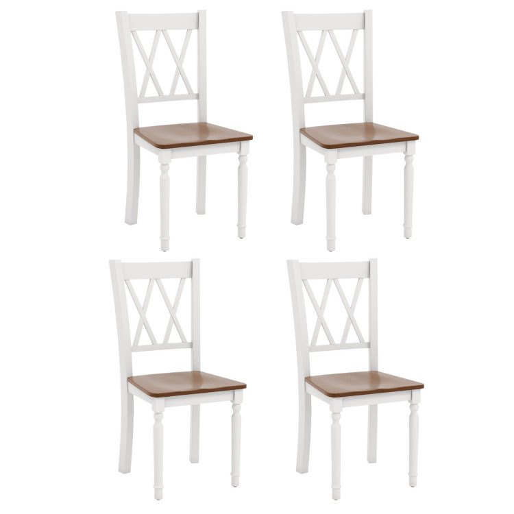 Set of 4 Wooden Farmhouse Kitchen Chairs with Rubber Wood Seat