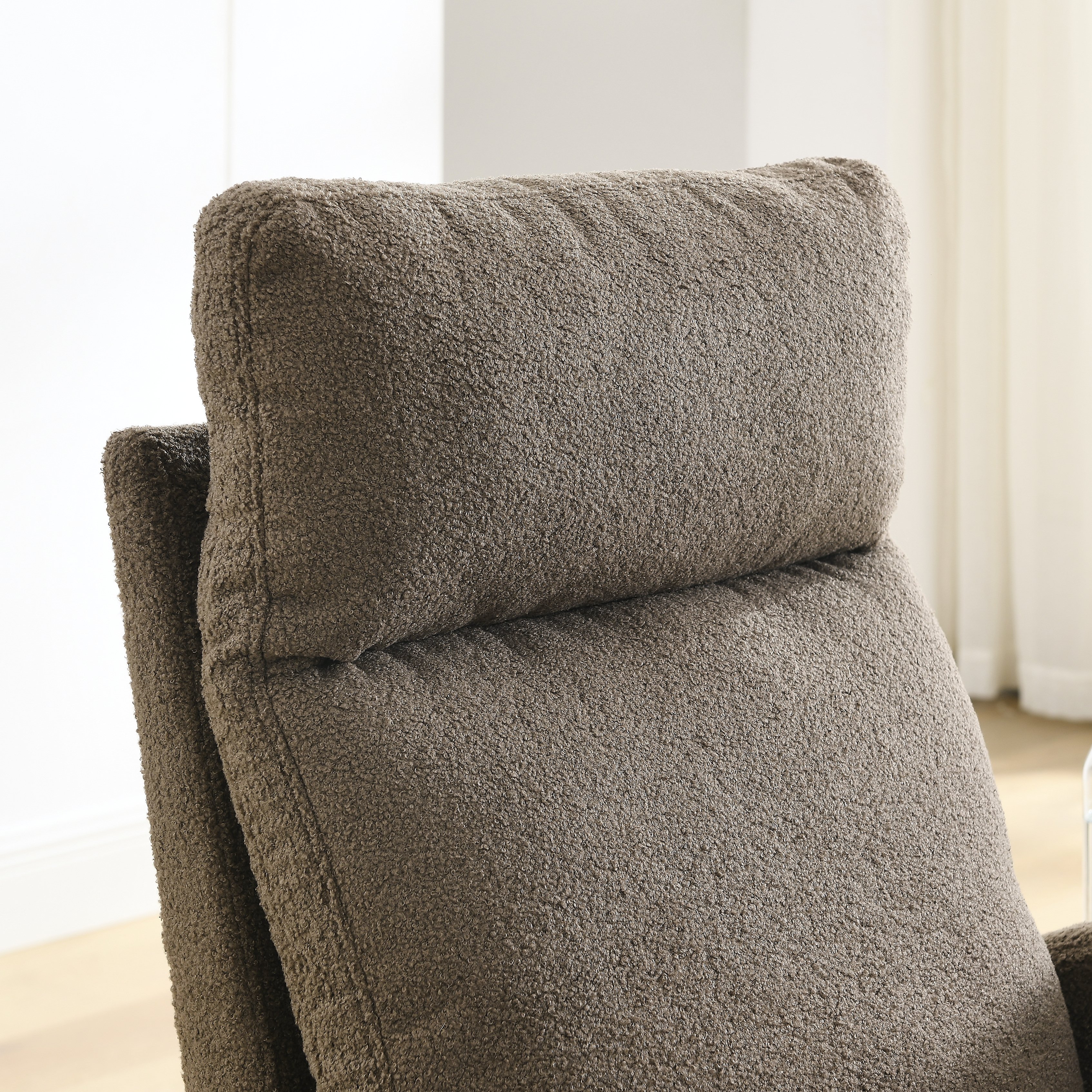 ▲Product Details.Carton quantity: 1 pieceProduct Name. Single-position rocking chairOverall size. Please refer to the pictureDetailed size. Please refer to the picturePackage size. Please refer to the descriptionPackage weight (lbs.). Please refer to the descriptionProduct weight (pounds). Please refer to the descriptionDoes the product include a pillow: NoLoad capacity: 250 lbs/seatAssembly required. Required (please refer to description) Fabric material: teddy fleeceFrame material: pine + eucalyptus + plywoodSeat structure: sponge + S-springPadding: CottonSofa foot material: woodCountry of origin. ChinaNote: Manual measurement has been used, there may be some reasonable error. All pictures are taken based on actual samples, there may be slight color differences due to lighting or monitor.