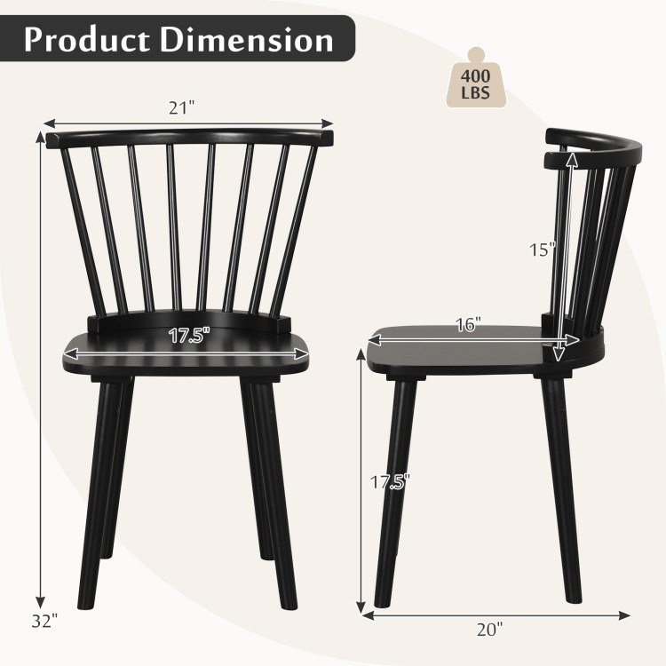 Windsor Dining Chairs Set of 2 Rubber Wood Kitchen Chairs with Spindle Back