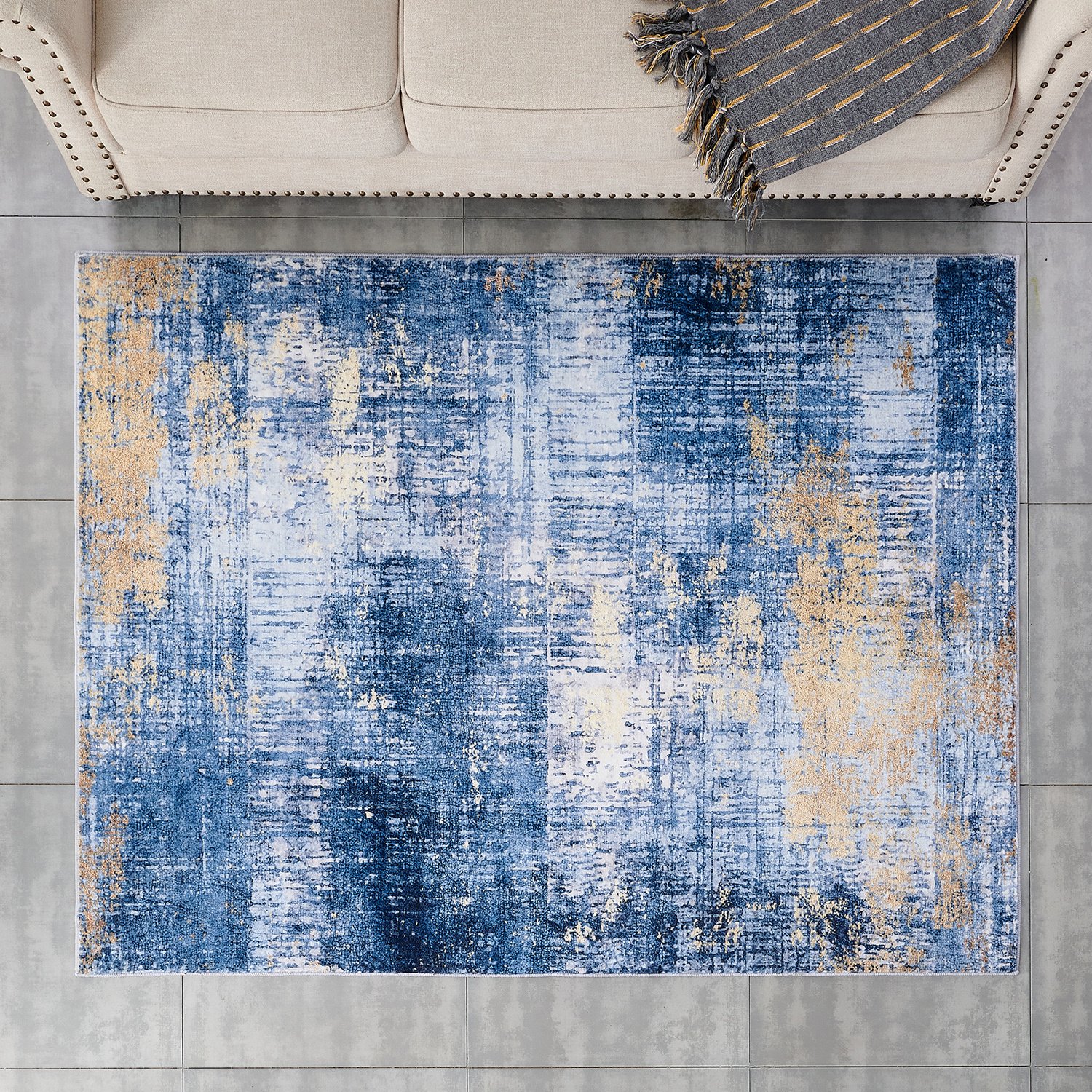 Home > ZARA Collection Abstract Design Blue Gold Machine Washable Super Soft Area Rug